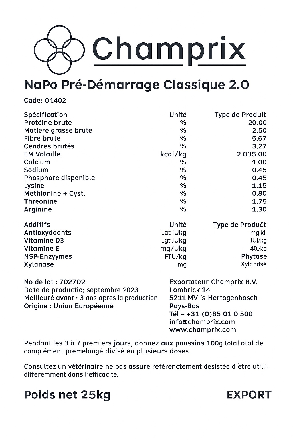 💼 Napo Prédémarrage Classique 2.0 est le choix des éleveurs exigeants qui misent sur un départ solide pour maximiser la performance future de leur élevage.